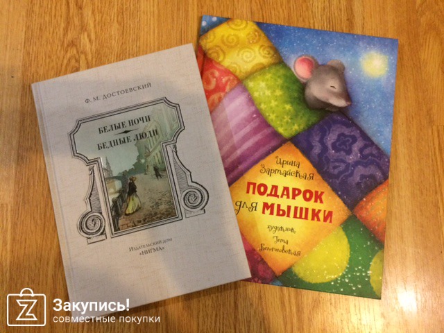Заказываю не в первый раз книги издательства НИГМА, но этот заказ очень удачный, заказала две книги первая это \"Подарок для мышки\". И. Зартайская ( волшебные иллюстрации, интересный и легкий для детского восприятия текст, ребенку 3 года с удовольствием слушает сказку про мышку) вторая книга: Достоевского Ф.М.\" Белые ночи. Бедные люди\" текст, оформление все на уровне. ( в качестве подарка подростку или любителю Достоевского, подойдет). Спасибо Александре большое!!!!