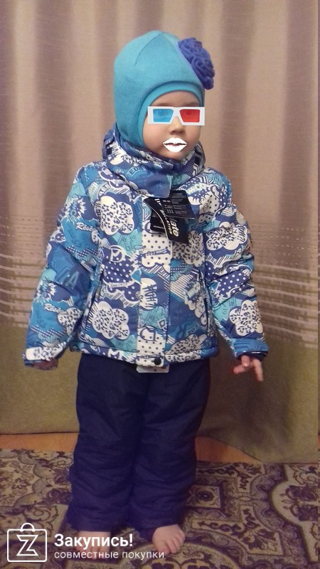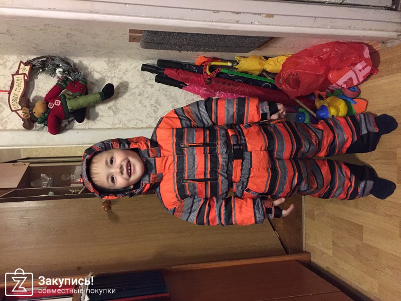 С меня обещанный отзыв. Костюм взяла на следующую зиму. Думаю, в размер, на нынешний рост 103 длинноваты рукава и штанины костюма 110 размера. Качество просто безупречное. Фурнитура и прочие приблуды на костюме - восторг! Все продумано до мелочей. Ткань плотная, усиленная, протестирована под водой из крана. Дочке понравился! Я довольна! Спасибо!