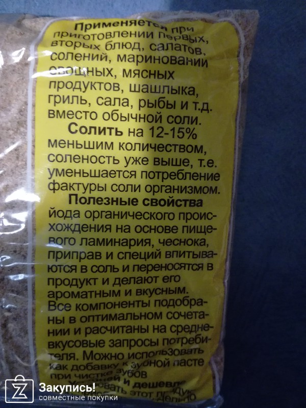 Заказывала на пробу адыгейскую уляпскую соль, почитав хорошие отзывы. Соль со специями, имеет приятный запах, на вкус тоже хорошая, мне понравилась, но не много крупновата по размеру. Ставлю и товару, и организатору по пять баллов.