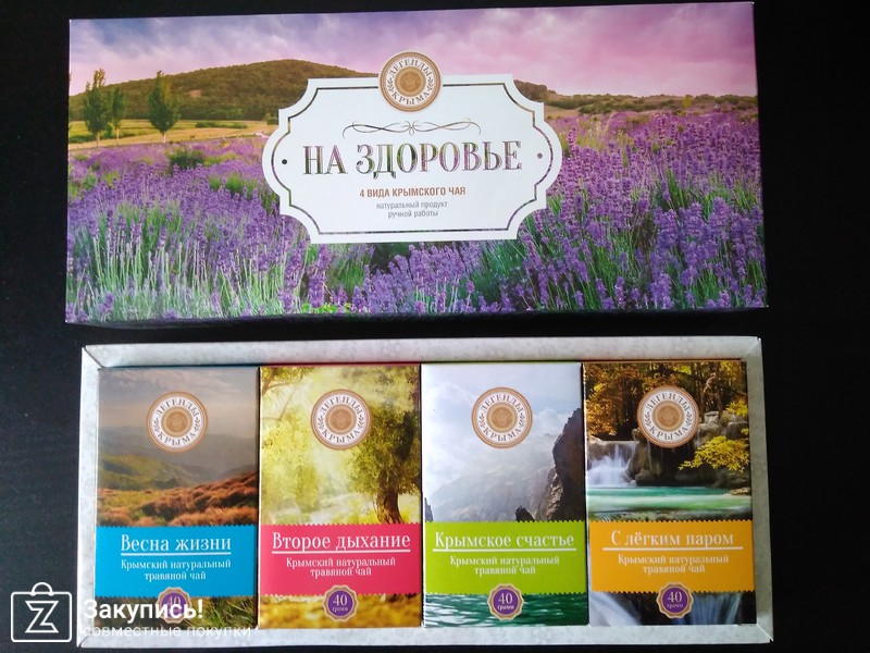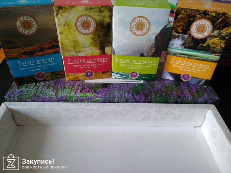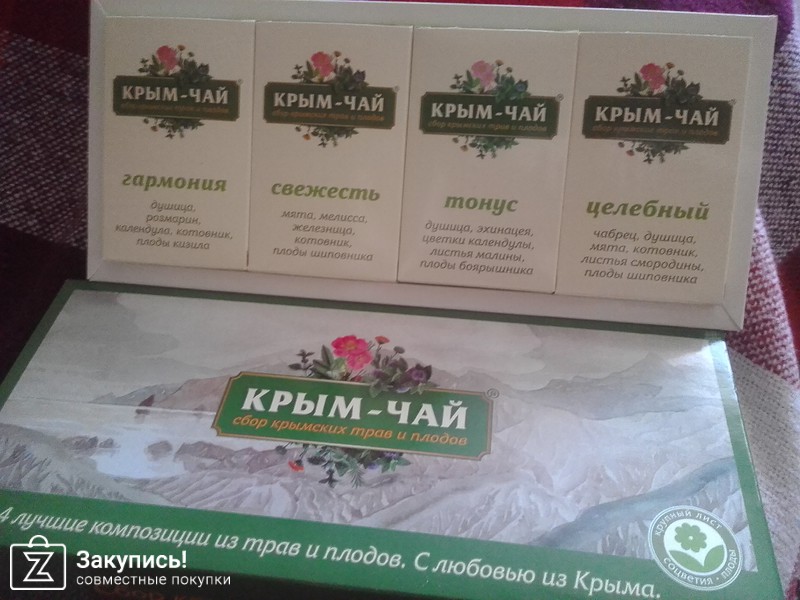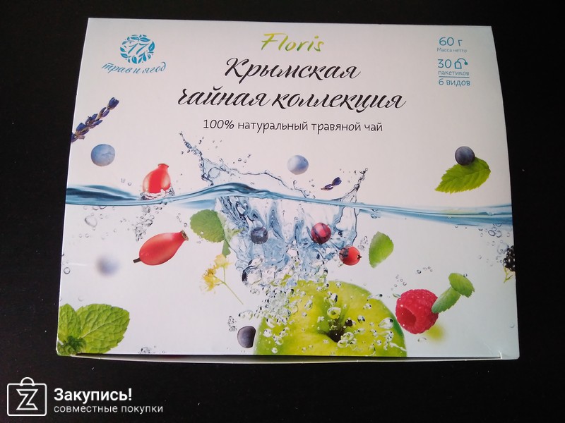 Чайные наборы торговой марки Флорис: \"На здоровье\"( 4 пакета чая по 40 гр) и \"Крымская чайная коллекция\" (30 пакетиков 6 видов чая). Спасибо организатору за закупку !