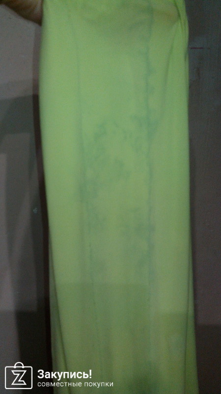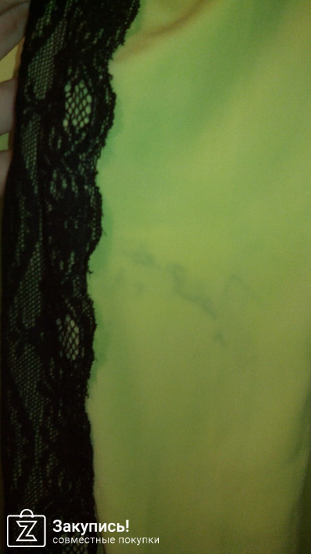 После покупки вещи всегда стираю. Жёлтая туника с чёрным кружевом на рукавах.... Первая же стирка, ручная, оказалась последней.... Кружево полиняло сине-фиолетовыми разводами по всему изделию. На рукавах отдельными пятнами, на основной части разводами (их получилось немного отстырать). Решила кружево отпороть, но увы, под кружевом все единой синей полосой. Придётся переделывать в футболку или из другой ткани делать рукава.