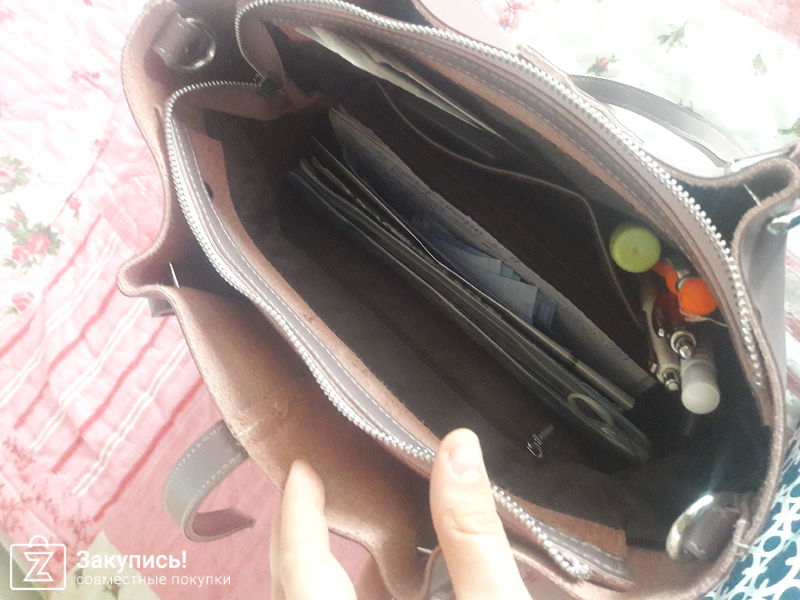 Сумочка очень приятная, что называется, мой любимый цвет, мой любимый размер. Нравится внешне, удобная. Одно только огорчило: на сайте написано натуральная кожа, по факту внутренняя сторона клапана, ремешка и боковина кармана кожзам. Отличается и по фактуре, и по цвету. На фото может незаметно, в жизни лучше видно. Хочется, чтобы это не отразилось на сроке службы сумки. Со стороны организатора всё отлично, оперативно и качественно, за что большое спасибо!