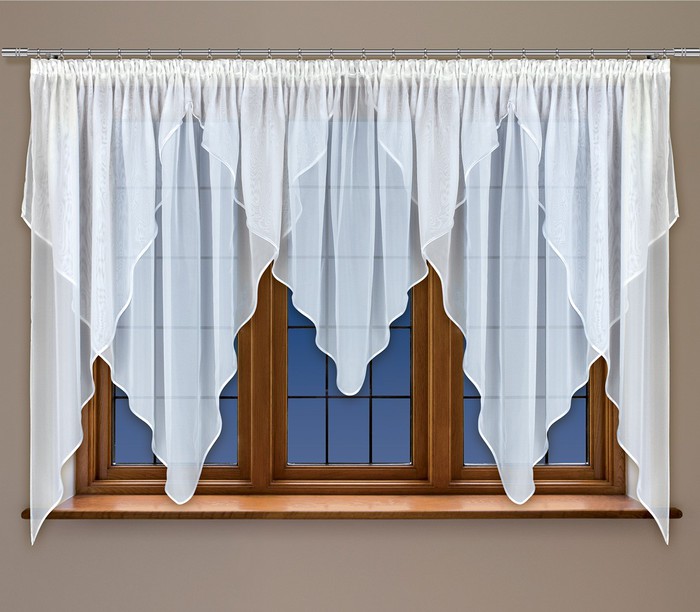 Занавеска из мягкой вуали средней прозрачности. Украшена атласной бейкой. Все детали пришиты на одну шторную ленту. Максимальная длина - 170 см. 100% полиэстер. Светонепроницаемость -10-12%. Производство FIRANKA.