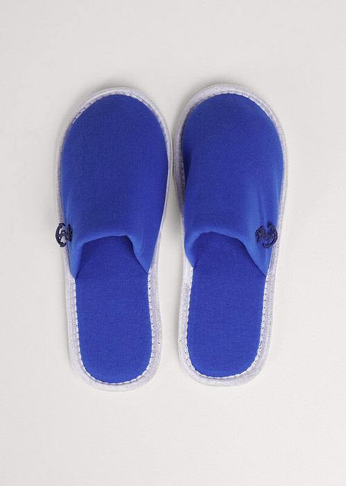 Лёгкие тапки для дома и отдыха с закрытым носом из хлопкового трикотажного полотна интерлок, нашивка металл. Толстая подошва.