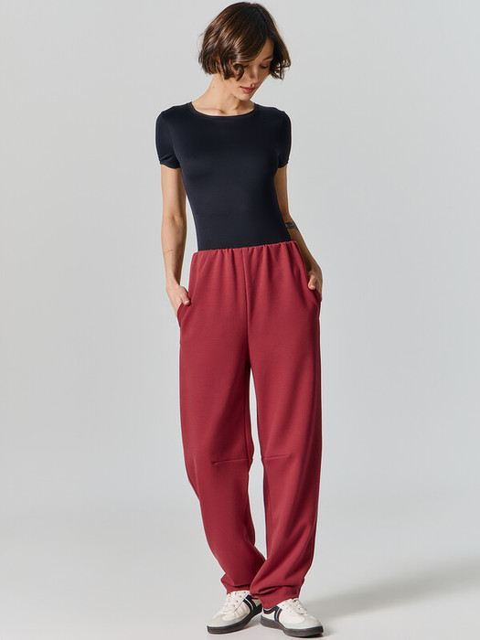 Боковые швы смещены вперед, чтобы создать более плавный и женственный силуэт. На поясе предусмотрена мягкая резинка, а в боковых швах спрятаны удобные карманы. Особый крой в области колена позволяет брюкам сохранять свою форму и не сковывать движения при ходьбе.
