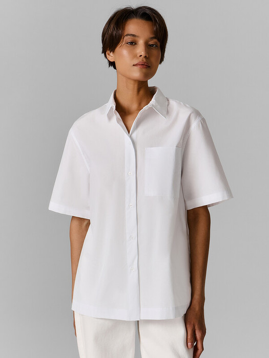Горловина круглой формы с рубашечным воротником. Плечо спущено, пройма углублена. Рукав втачной, короткий. Низ рубашки прямой.