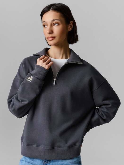 Женская толстовка на молнии станет незаменимой частью вашего повседневного гардероба. Модель, выполненная из высококачественного футера, который отлично сохраняет тепло и при этом позволяет коже дышать, идеальна для прохладной погоды. Толстовка свободного силуэта оверсайз с круглой горловиной и воротником-стойкой добавит современный и стильный акцент в образ. Центральная застежка-молния позволяет ее легко надевать и снимать, а длинные рукава с эластичными манжетами из рибаны обеспечивают удобство и тепло. Спущенное плечо придает модели непринужденный и современный вид. Эта толстовка прекрасно сочетается с джинсами, леггинсами или спортивными брюками, создавая стильный и удобный образ для любых ситуаций. Независимо от того, идете ли вы на прогулку, встречаетесь с друзьями или просто отдыхаете дома, эта толстовка обеспечит комфорт и уверенность каждый день.