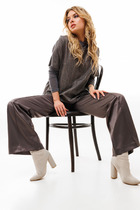 Низ изделия обработан швом вподгибку узкой плоскошовной строчкой.