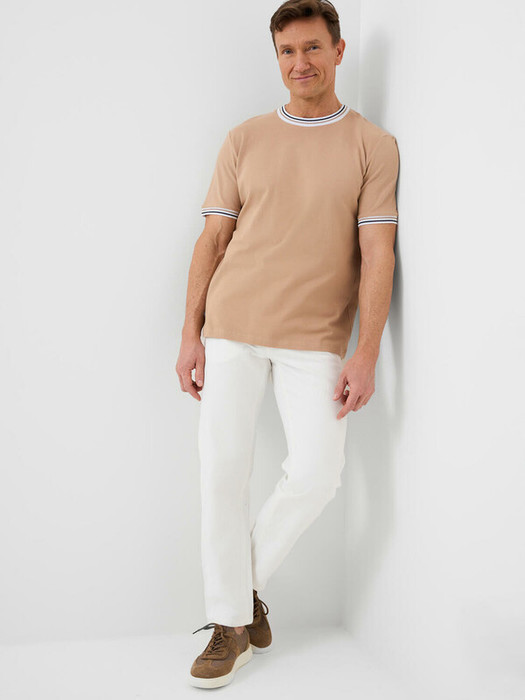 Классические мужские джинсы прямого кроя с комфортной средней посадкой. Пояс со шлёвками и застёжкой на болт и молнию. Спереди расположены два основных кармана и один маленький дополнительный, сзади — два накладных кармана. Джинсы выполнены из белой плотной ткани, дополнены металлической фурнитурой и контрастной строчкой. Сзади — фирменная кожаная нашивка на поясе.