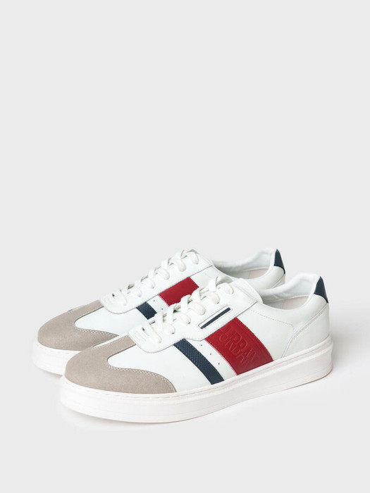 Кожаные белые кеды на шнурках мужские. Кеды выполнены из натуральной кожи с отделкой из цветной искусственной кожи. Профилированная съемная стелька из натуральной кожи. Подошва из ТПР гибкая и износостойкая. Удобная колодка. Классические мужские кроссовки имеют универсальный дизайн, их можно сочетать и с деловым и с кэжуальным образом.