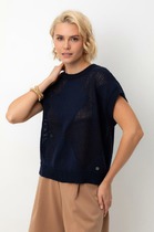 Джемпер в стиле прямой футболки с короткими рукавами. Прямой силуэт, стандартная длина. Выполнен жаккардом из мягкой полушерстяной пряжи. Шерсть мериноса в составе сохраняет тепло, а благодаря волокнам акрила изделие мягкое и дольше сохраняет форму.