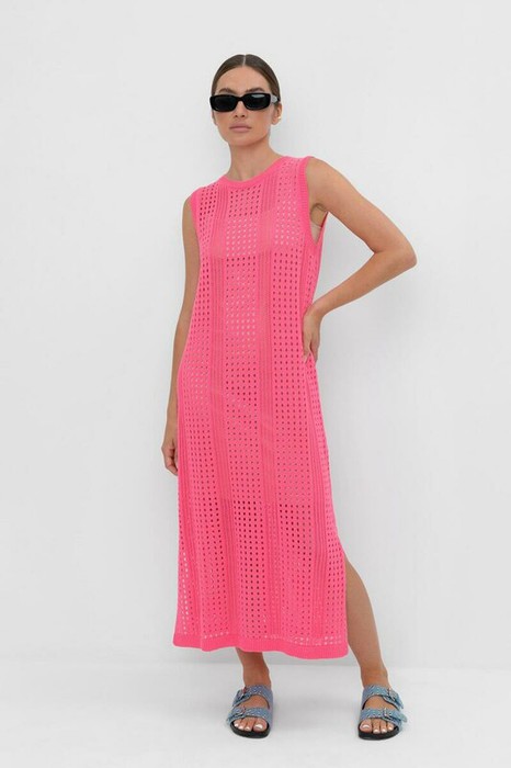 Вязаное ажурное платье. Состав 50% хлопок, 50% акрил. Благодаря акрилу в составе изделие не пилингуется. В комплекте внутреннее платье из бифлекса.