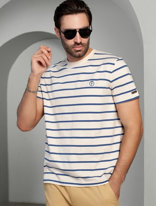 Совместные покупки Пермь Мужская одежда Футболки — 06.04 Vilatte Футболка из премиального хлопка с эластаном U49.024 экрю-св.синий