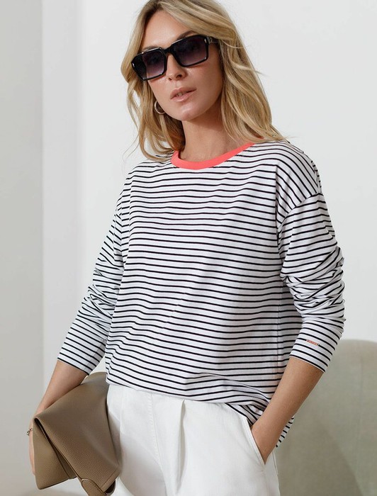 Совместные покупки Пермь Женская одежда Джемперы, свитеры, водолазки — 06.04 Vilatte Лонгслив с принтом из премиального хлопка с эластаном D49.148 бел