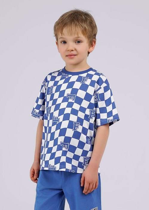 Ультрамодная футболка с принтом ""шахматка"" прямого силуэта. Выполнена из пике - приятный и дышащий материал отлично подходит для жаркого лета. Комбинируй футболку с джоггерами или шортами.
