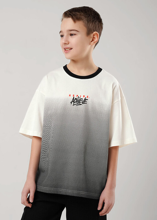 Стильная футболка с градиентным принтом то что нужно для активного отдыха и прогулок с друзьями. Модель выполнена из 100% хлопка и дополнена эластичной горловиной. Создавай яркие образы, сочетая футболку с брюками и шортами из новой коллекции!