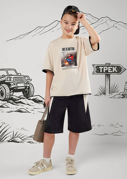Стильные шорты из 100% хлопкового футера с контрастными боковыми вставками и регулируемым поясом на резинке — комфортный выбор для активного мальчика.Натуральный материал обеспечивает отличную воздухопроницаемость,а продуманный крой не стесняет движений.