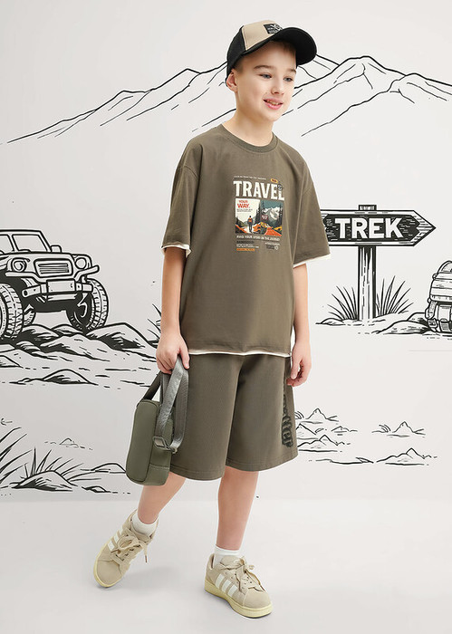 Комфортные шорты цвета хаки из 100% хлопкового футера с боковыми карманами и практичным поясом на эластичной резинке с регулировочным шнурком. Натуральный материал обеспечивает отличную воздухопроницаемость и удобство при носке.