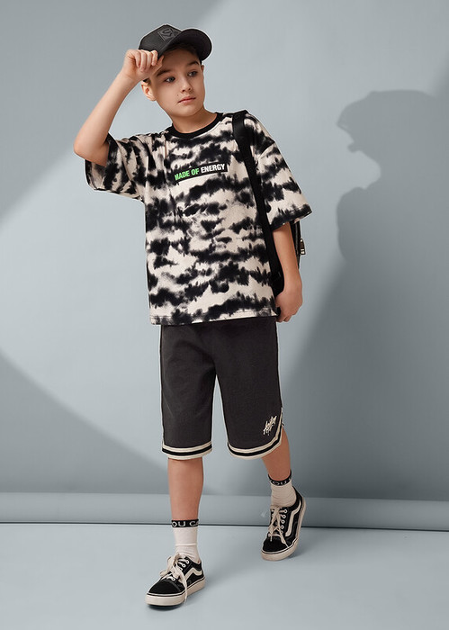Трендовые шорты из хлопкового футера с эластаном. Модель оснащена эластичным поясом с регулировкой объёма талии, боковыми функциональными карманами, стильным принтом и модной тесьмой вдоль нижнего края - идеальный вариант для повседневного образа.