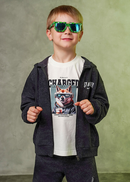 Стильная толстовка из варёного футера для мальчика. Комфортная посадка оверсайз, капюшон, застежка на молнии, удобные карманы, эластичные манжеты и пояс - всё, что нужно для активной жизни ребёнка! Сочетай толстовку с брюками из новой коллекции.
