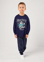 Трикотажная пижама из натурального хлопка. Джемпер с длинными рукавами с эластичными манжетами. У брюк эластичный пояс на резинке. Оригинальная набивка и принт выполнены из стойких, гипоаллергенных текстильных красителей. Пижама сохраняет цвет и форму после многократных стирок. Все трикотажные полотна производятся в соответствии с нормами Швейцарского сертификата ЭкоТекс.
