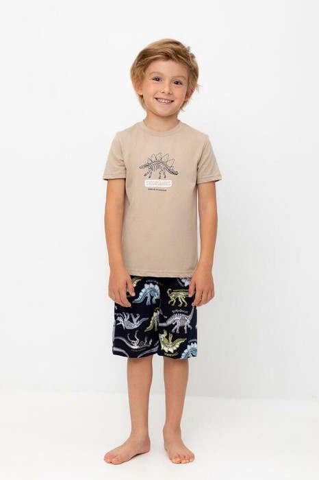 08.04 Crockid пижама дет К 1528/темно-бежевый,цветные динозавры