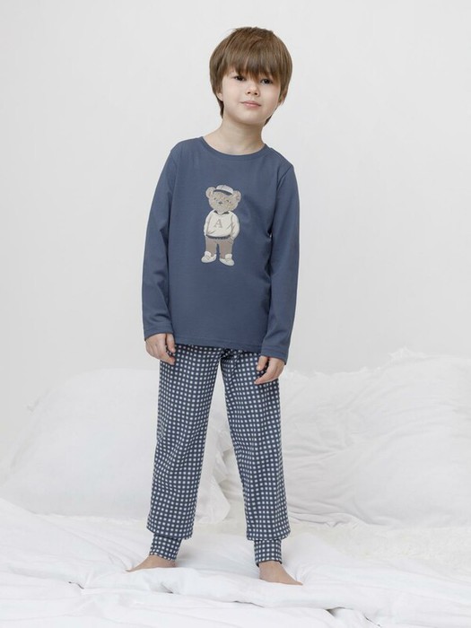 Пижама для мальчика из натурального хлопка. Джемпер с длинными втачными рукавами и брюки с эластичной резинкой в поясе. Мягкие манжеты по низу брюк сделаны из материала в рубчик. Оригинальная набивка и принт выполнены из стойких текстильных гипоаллергенных красителей. Изделие сохраняет цвет и форму после многократных стирок. Все трикотажные полотна производятся в соответствии с нормами швейцарского сертификата ЭкоТекс.