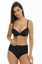 Бюстгалтер с формованной чашкой без push-up, со съемными бретелями и силиконовой лентой с внутренней стороны пояса бюстгалтера. По верху чашки модель декорирвана кружевом.