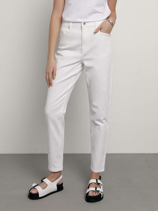 Наступило время белого денима. Берите эти классические джинсы mom c квадратными карманами за основу, когда захотите создавать образы в лучших традициях street-style хроник.