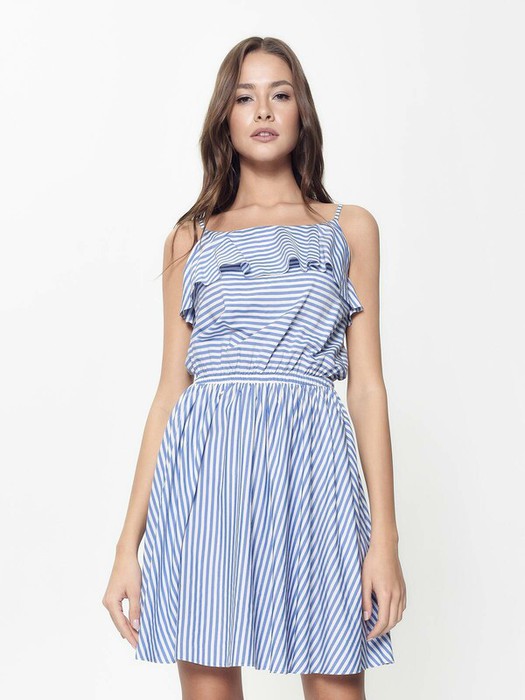 Ультрамодное платье на тонких регулируемых бретелях с широкими рюшами по переду и спинке - must have в летнем гардеробе современной девушки. Благодаря эластичному поясу, свободному силуэту и мягкой драпировке платье безупречно сидит по фигуре и визуально стройнит. Продуманный состав ткани с высоким содержанием вискозы делает платье легким, тактильно приятным и простым в уходе.