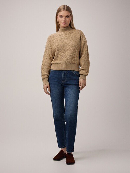 "Свитер объемного силуэта с фактурным переплетением сочетается практически со всеми вещами из базового гардероба и подарит вам много уютных моментов благодаря пряже с хлопком.