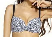 Купальный костюм для женщин комбинированный из трикотажного полотна. бюстгальтер из набивного трикотажного полотна на подкладке с уплотненными чашечками с эффектом push-ap, декоративной сборкой в области чашечек, застежкой по спинке. бретели бюстгальтера - не съемные, регулируемые. плавки - бикини однотонные на подкладке (классические).