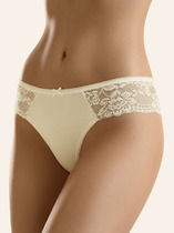 Трусы-слипы бежевого цвета, изготовлены из эластичной синтетической ткани с высококачественной клеевой обработкой срезов, дополнены гигиенической хлопковой ластовицей, средней посадки.