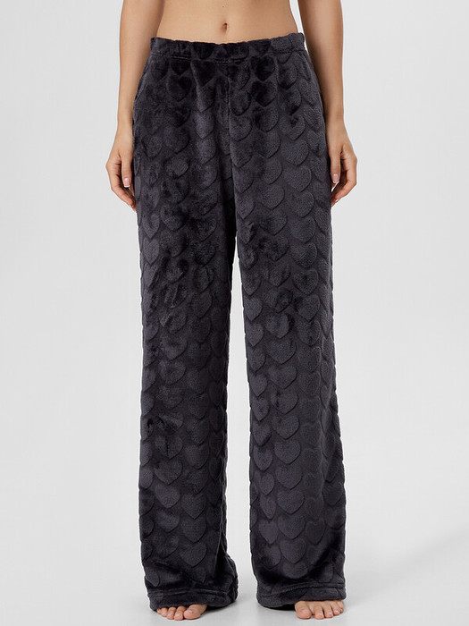 Женские домашние брюки — это уют и элегантность для вашего отдыха. Модель выполнена из мягкого трикотажа с меховым ворсом, который обеспечивает тепло и нежное прикосновение к коже. Прямой свободный крой со средней посадкой и эластичным поясом на широкой резинке гарантирует комфорт без давления, идеально адаптируясь к фигуре. Аккуратная обработка низа сохраняет форму брюк даже после множества стирок.