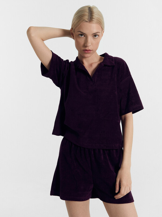 Комплект состоит из джемпера и шорт. Джемпер свободного силуэта. Перед и спинка цельнокроеные. Горловина обработана воротником «поло». Рукава втачные, длиной до локтя, со спущенной линией плеча. Низ изделия и рукава в подгибку. Шорты свободного силуэта, короткие. Перед и спинка цельнокроеные. Пояс цельнокроеный, с втаченной эластичной тесьмой. Низ шорт обработан швом в подгибку..