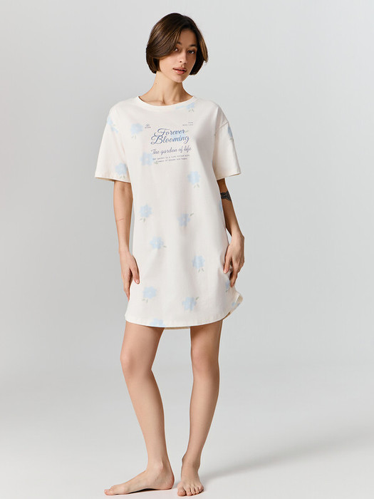 Ночная сорочка с нежным цветочным узором отличается продуманным кроем. Спущенное плечо и короткий рукав обеспечивают удобную посадку, а круглая горловина классической формы подчеркивает женственность. Длина выше колен идеальна для свободного движения.