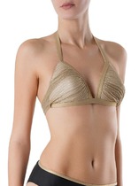 Купальник с тонкими формованными чашками. Бретели сзади отстегиваются, можно завязать на шее.