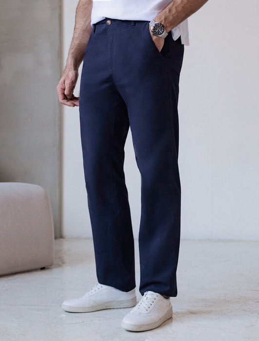 Совместные покупки Пермь Мужская одежда Брюки — 21.04 Vilatte Брюки-чиносы из эластичного твилла U24.001 темно-синий
