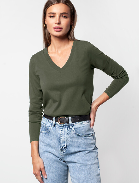 Совместные покупки Пермь Женская одежда Джемперы, свитеры, водолазки — 21.04 Vilatte Джемпер из премиального хлопка с эластаном D49.958 темно-оливковый