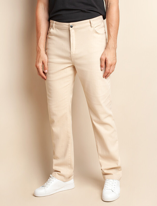 Темно-оливковые брюки, слегка зауженные к низу, выполнили из 100% хлопкового денима. Изделие комфортно садится по фигуре, обеспечивая свободу движений. Легко сочетается со всеми цветами одежды. Модель дополнили высококачественной фурнитурой бренда.