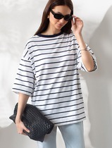 Свободная футболка в полоску из премиального хлопка с эластаном