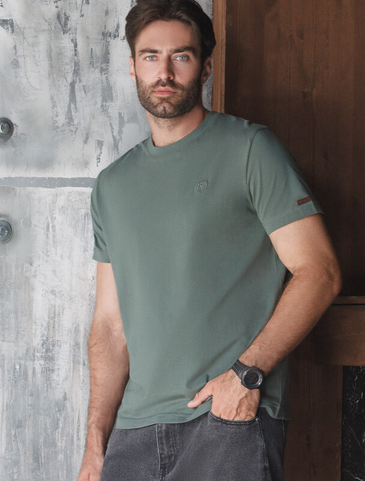 Однотонная футболка выполнена в минималистичном стиле, дополнена аккуратной вышивкой на груди в виде буквы V в тон изделия, а так нашивкой на рукаве из эко-кожи с логотипом VILATTE. Подходит как классический вариант для работы в офисе под пиджак, так и для повседневной носки или занятий спортом. Мягкая ткань приятна к телу, не вызывает дискомфорта и идеально подходит для дома или летних прогулок благодаря короткому рукаву.