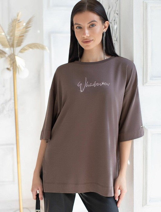 Совместные покупки Пермь Женская одежда Футболки — 09.04 Vilatte Футболка оверсайз с принтом стразами из премиального хлопка с эла