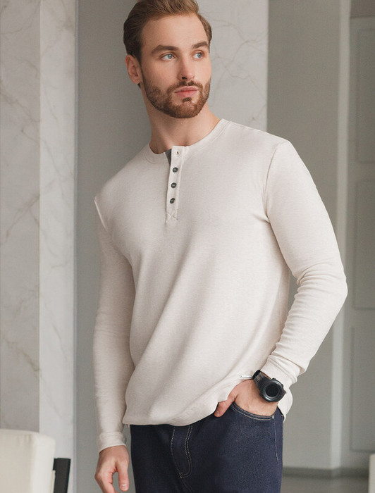 Совместные покупки Пермь Мужская одежда Футболки — 09.04 Vilatte Лонгслив из премиального хлопка с эластаном U49.054 бежевый меланж