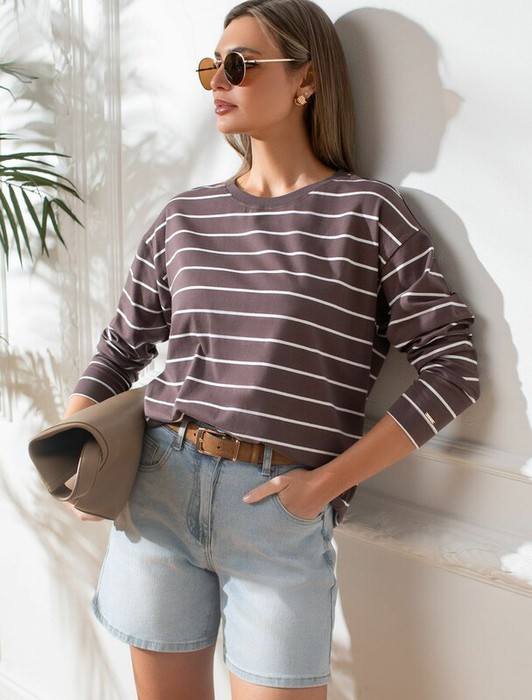 09.04 Vilatte Лонгслив с принтом из премиального хлопка с эластаном D49.148 коф