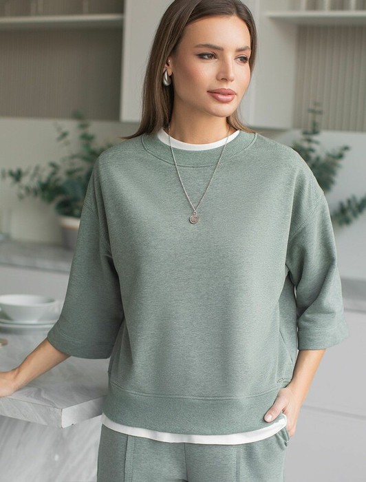 09.04 Vilatte Свитшот свободный из петельчатого футера двухнитки с эластаном D4