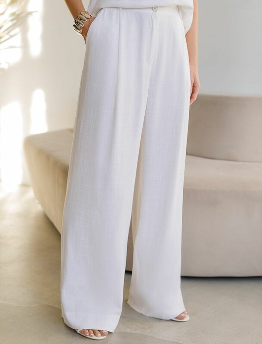 Свободные брюки палаццо салатового цвета изо льна с вискозой, плотностью 200 Г/м2 — выбор, который легко выделит в любой обстановке. Свободные длинные брюки с высокой посадкой создают идеальный силуэт, визуально вытягивают и стройнят фигуру. Натуральный состав ткани обладает высокой воздухопроницаемостью, хорошо драпируется и мягко прилегает к фигуре, создавая струящиеся складки. Мягкая эластичная резинка, встроенная в пояс брюк, обеспечивает идеальную посадку по фигуре, не сдавливая талию и гарантируя максимальный комфорт при движении. В повседневных брюках будет очень комфортно, благодаря правильной регуляции температуры тела. Брюки подходят на маленький и высокий рост, а так же на любую фигуру, позволяя подчеркнуть достоинства и скрыть возможные недостатки. Летние льняные брюки отлично сочетаются с монохромным верхом для вытягивания силуэта, с ними можно создавать эффектные наряды как на выход, так и для ежедневных рабочих дел или простых прогулок, от делового шика до повседневного кэжуал.