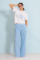 21.04 Vilatte Свободные брюки палаццо на эластичном поясе изо льна с вискозой D2