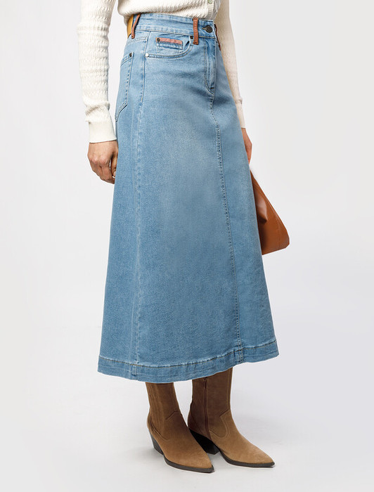 09.04 Vilatte Юбка А-силуэта из эластичного денима D56.060 синий