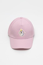 Кепка для девочки из текстиля и сетки. Спереди украшена оригинальной нашивкой. Регулируется по ширине головы и фиксируется на затылке с помощью пластиковой застёжки.